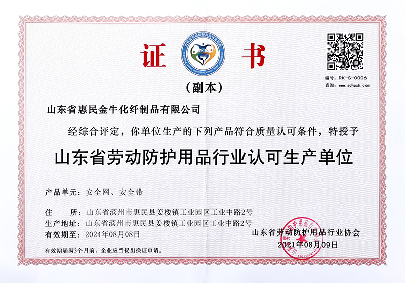 山東省惠民金牛化纖制品有限公司成立于一九九九年,座落于物華天寶、人杰地靈的魯北平原、孫子故里(位于濟南至濱州220國道中段)。濟東高速惠民姜樓出口。       姜樓鎮生產繩網已有三百年的歷史,被譽為“繩網之都”。本公司交通便利,經濟發展迅速,繩、網、安全帶、安全帽及化纖制品規格齊全,公司連續10年被國家指定為特種勞動防護用品定點生產企業。用戶滿意勞動防護用品生產企業。       公司生產流程:從抽絲,捻線,制繩,織網,織帶,注塑,成品。       公司現有職工125人,總占地6000平方米,其中廠房占地面積5000平方米,擁有固定資產2000多萬元。密目網10臺套,捻線機3臺,大型噴絲機3臺,織帶機13臺,全自動大型縫紉機15臺,合繩機5臺。大型注塑機2臺,有節單鉤織網機4臺,大型染色機1臺。主要生產安全網、密目式安全立網、安全帶、安全帽、高強絲及各種防護網、丙綸線、施工線、安全繩、汽車網、火車、異形網等。產品遠銷全國各省、市、自治區,公司產品自投放市場以來深受各級主管部門及建筑施工單位的好評。       公司經營宗旨:“,用戶至上;以質量求生存,...