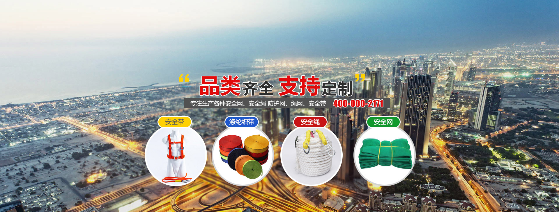 主要生產安全網、密目式安全立網、安全帶、安全帽、高強絲及各種防護網、丙綸線、施工線、安全繩、汽車網、火車、異形網. 連續10年被國家指定為特種勞動防護用品定點生產企業。用戶滿意勞動防護用品生產企業。